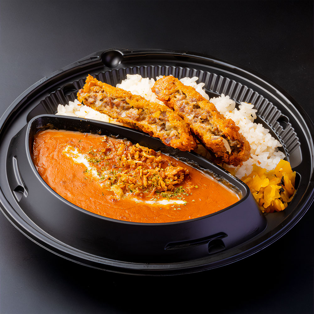 牛タンの旨みたっぷりのメンチカツをのせた甘辛カレー。コクとザクッと衣でやみつきの一品!